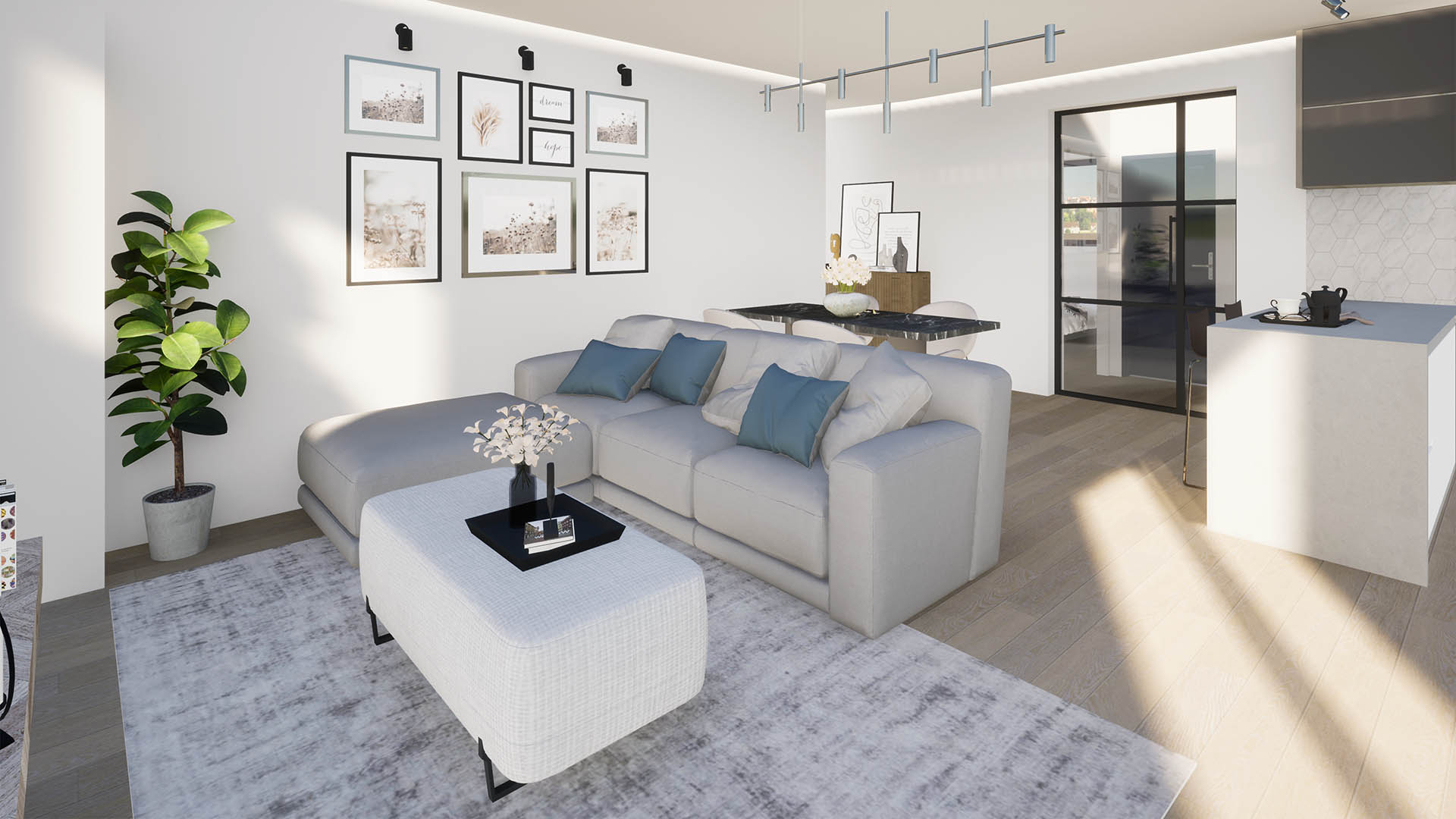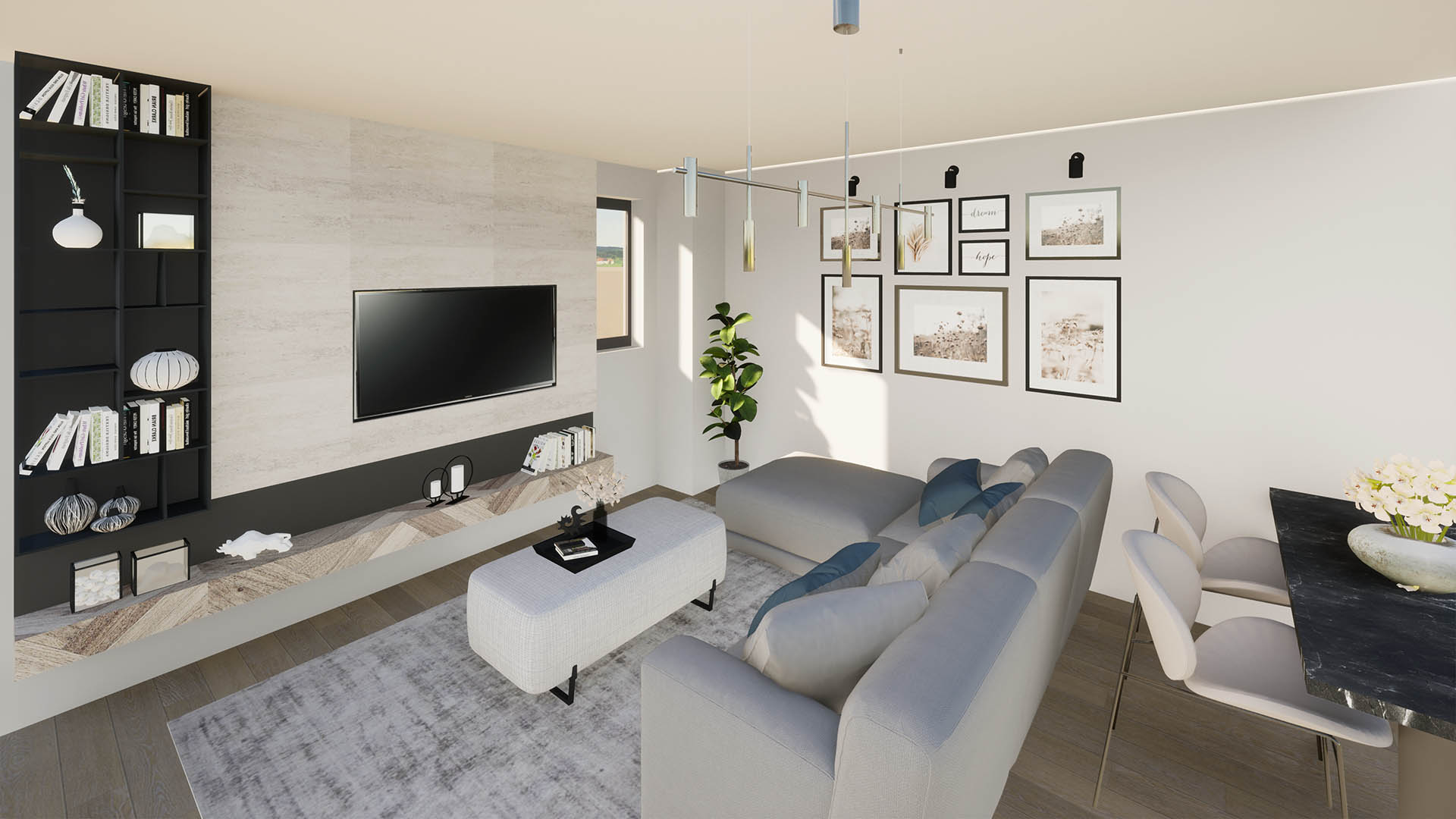 The total area of the apartment is 59,74 m2, terrace of 13,22 m2, and it additionally has one parking space of 2 m2 in front of the building.