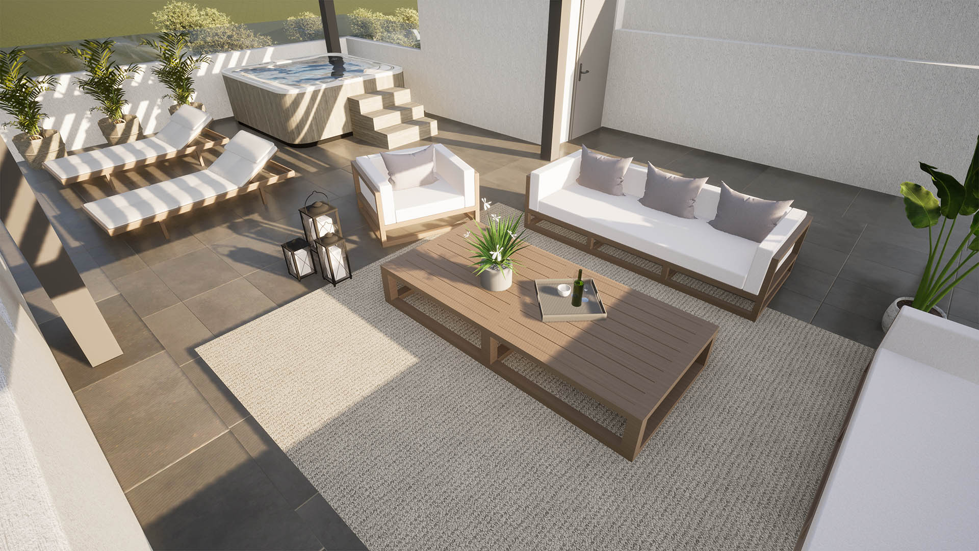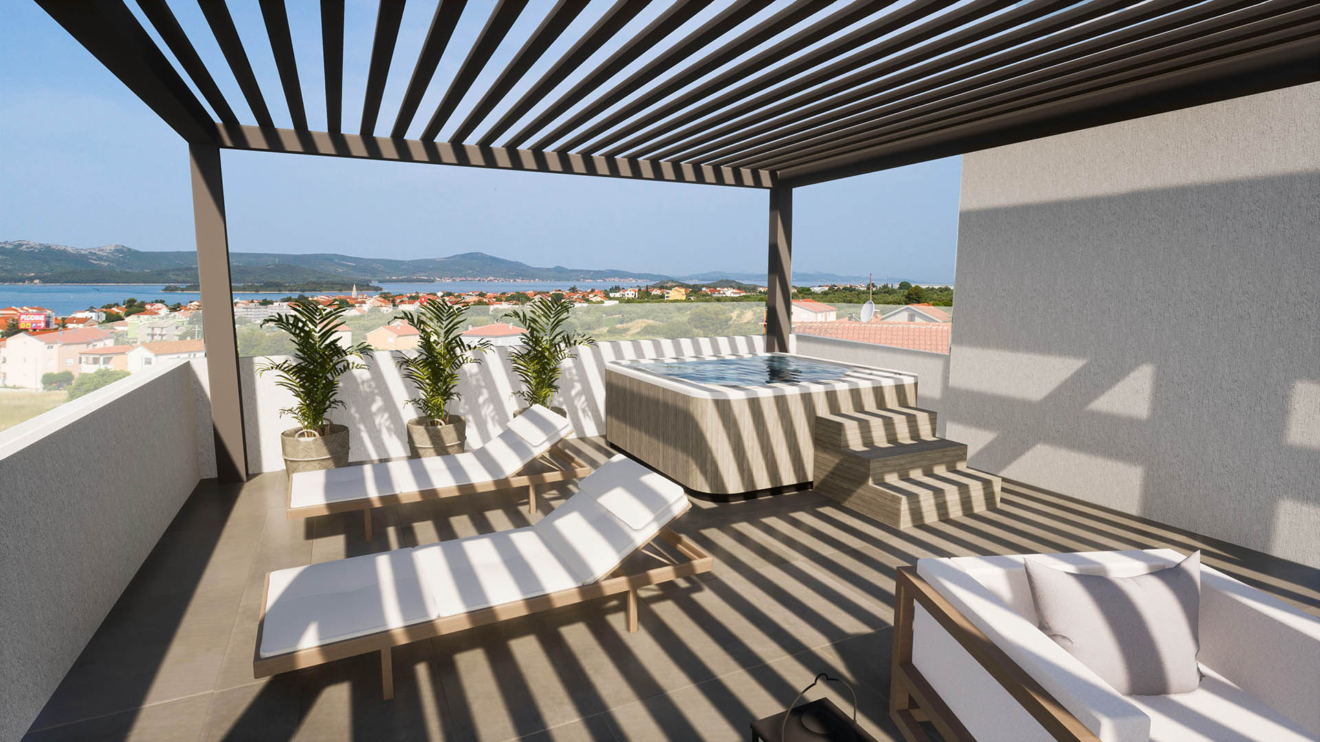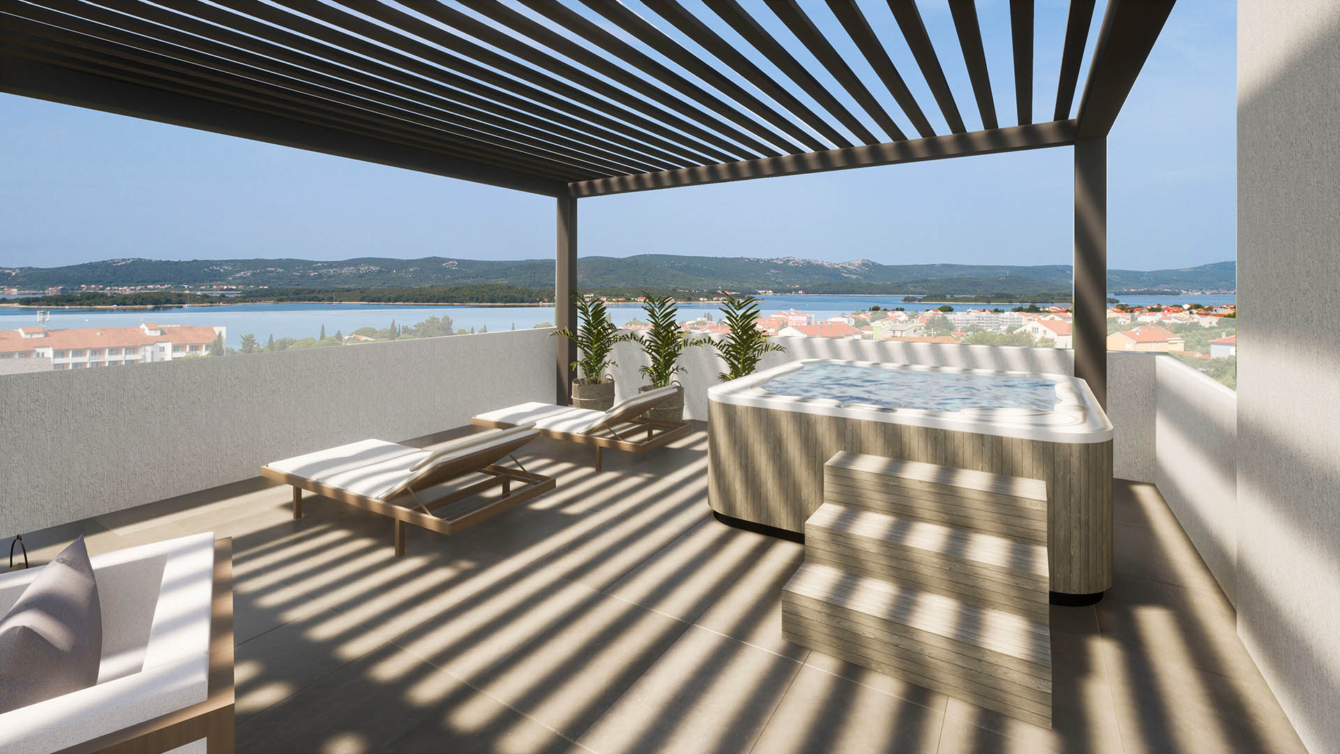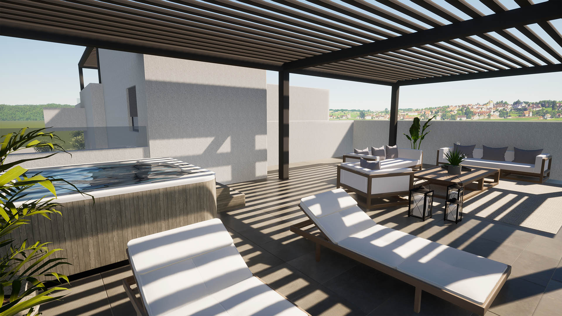 The apartments on the 3rd floor each have a roof terrace of 60 m2 with a Jacuzzi.